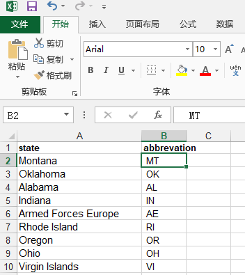 # 将 state_to_code 直接加载到 DataFrame abbr2 = pd.DataFrame(list(state_to_code.items()), columns=['state', 'abbr'])