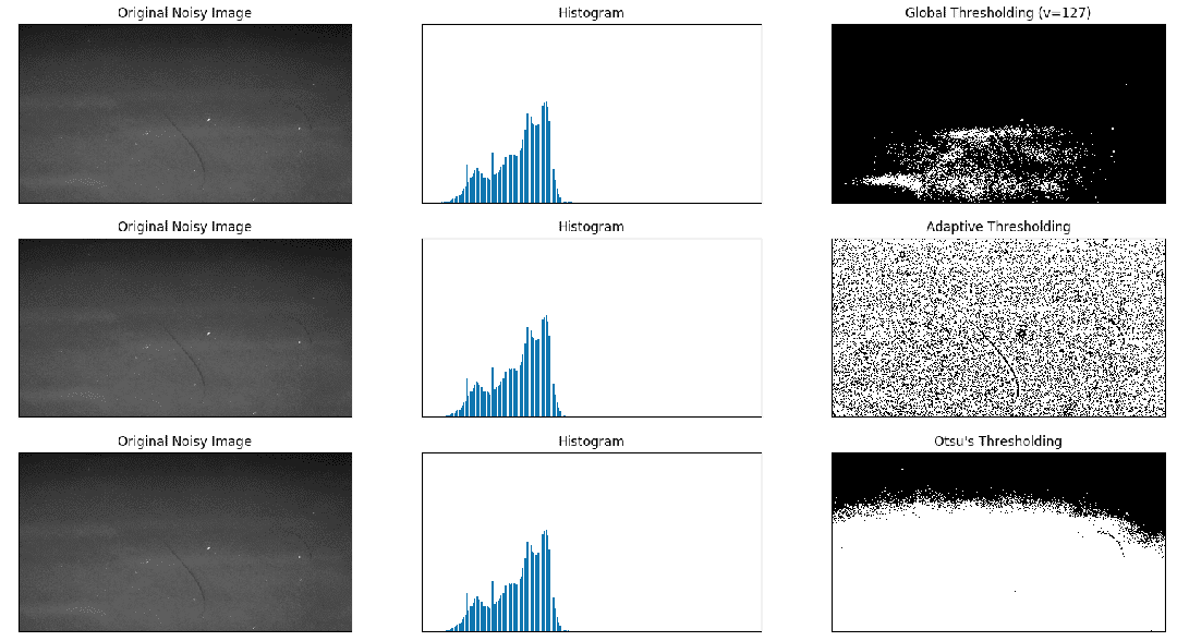 'Original Noisy Image', 'Histogram', "Otsu's Thresholding"