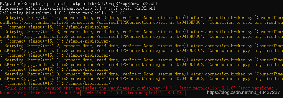 然而并没有卵用,还是失败,这个时候发现是不是少了kiwisolver这个包,继续下载这个包进行安装。