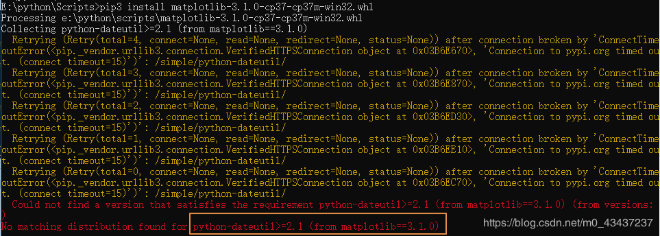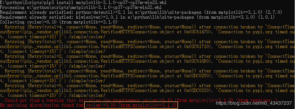 到此这篇关于关于python3.7安装matplotlib始终无法成功的问题的解决的文章就介绍到这了,更多相关python3.7安装matplotlib无法成功内容请搜索脚本之家以前的文章或继续浏览下面的相关文章希望大家以后多多支持脚本之家!