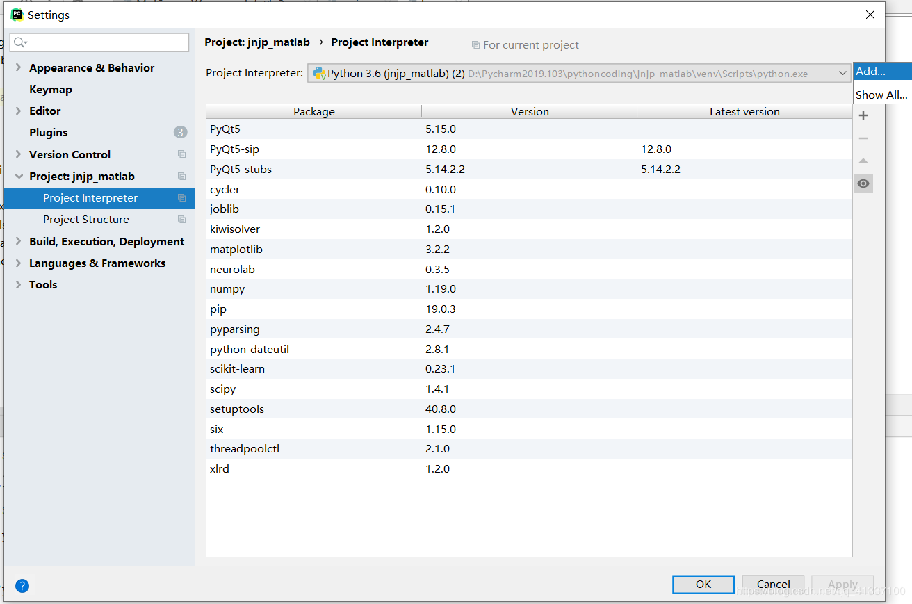 如果不确定可以设置再add在新增加的环境里看现在是哪个环境,只要选择已有的环境,虽然project interpreter里面好像新增了个(2),但是包可以直接移植过来。