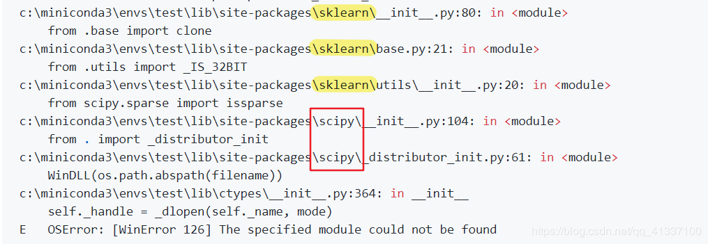 按道理conda会直接配置好环境,但是当我直接from sklearn import preprocessing的时候,发现出现了错误,OSError: [WinError 126] 找不到指定的模块。