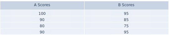 fig = go.Figure(data=[go.Table(header=dict(values=['A Scores', 'B Scores']),