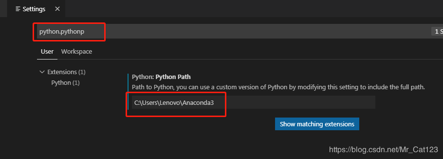 也可以在环境变量中找3, 在搜索栏search settings中输入python.pythonpath, 在方框中输入你安装的anaconda的路径(即2中复制的路径),注意你复制的路径可能是两个斜杆,变成一个斜杆即可。