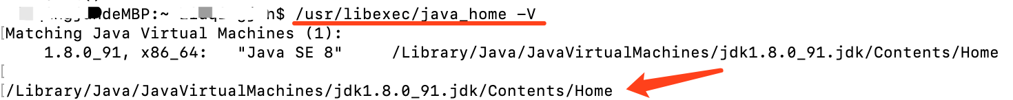 步骤一:打开mac终端命令行工具,输入“/usr/libexec/java_home -V”,查找java安装路径,如下图: