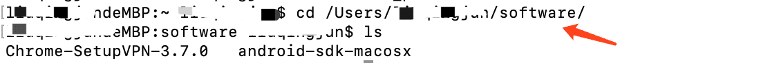 2.2.1 下载好android-sdk_r24.4.1-macosx.zip后解压到一个指定路径,如下图所示在用户下面新建一个software目录: