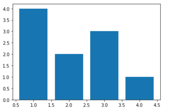 plt.bar(x = [1, 2, 3, 4], height = [4, 2, 3, 1])