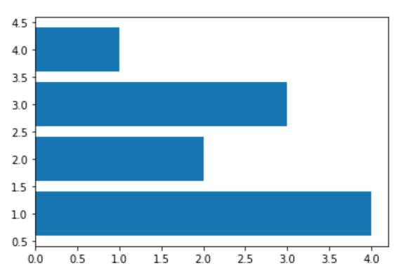 plt.barh(y = [1, 2, 3, 4], width = [4, 2, 3, 1])