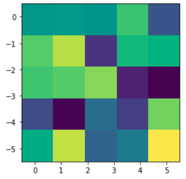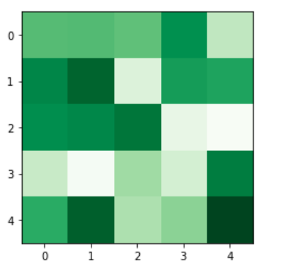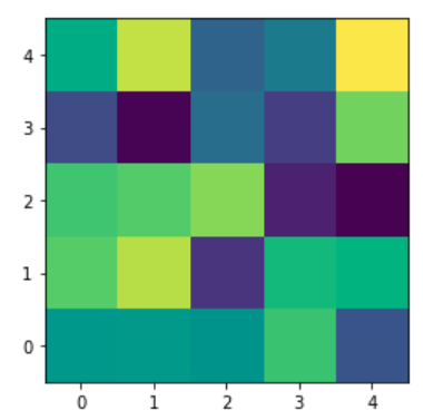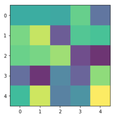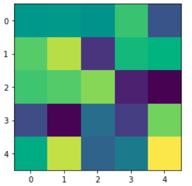 import matplotlib.pyplot as plt import numpy as np np.random.seed(123456789) data = np.random.rand(25).reshape(5, 5) plt.imshow(data)