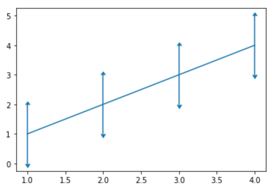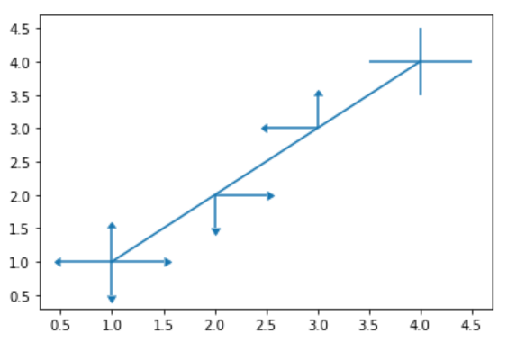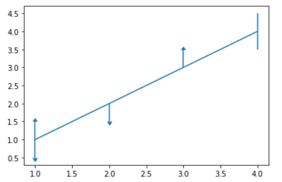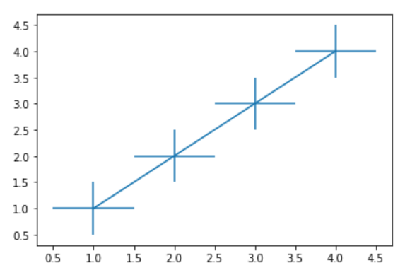 yerr参数用于指定y轴水平的误差,同时该方法也支持x轴水平的误差,对应参数xerr。指定误差值有多种方式,上述代码展示的是指定一个统一标量的用法,此时,所以的点误差值都一样。