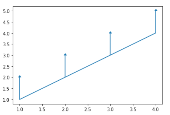 当uplims参数的值为True时,向上的误差线不显示,向下的误差线加箭头,用法如下