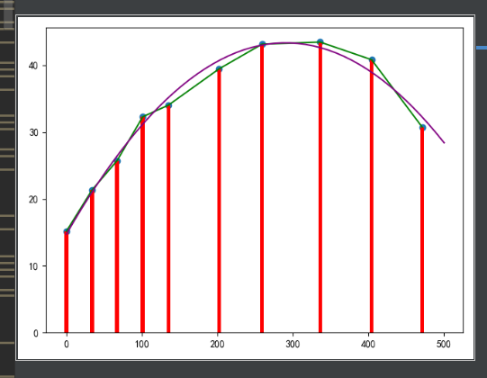 y=-0.00024*(item**2)+0.1013*(item)+10.23