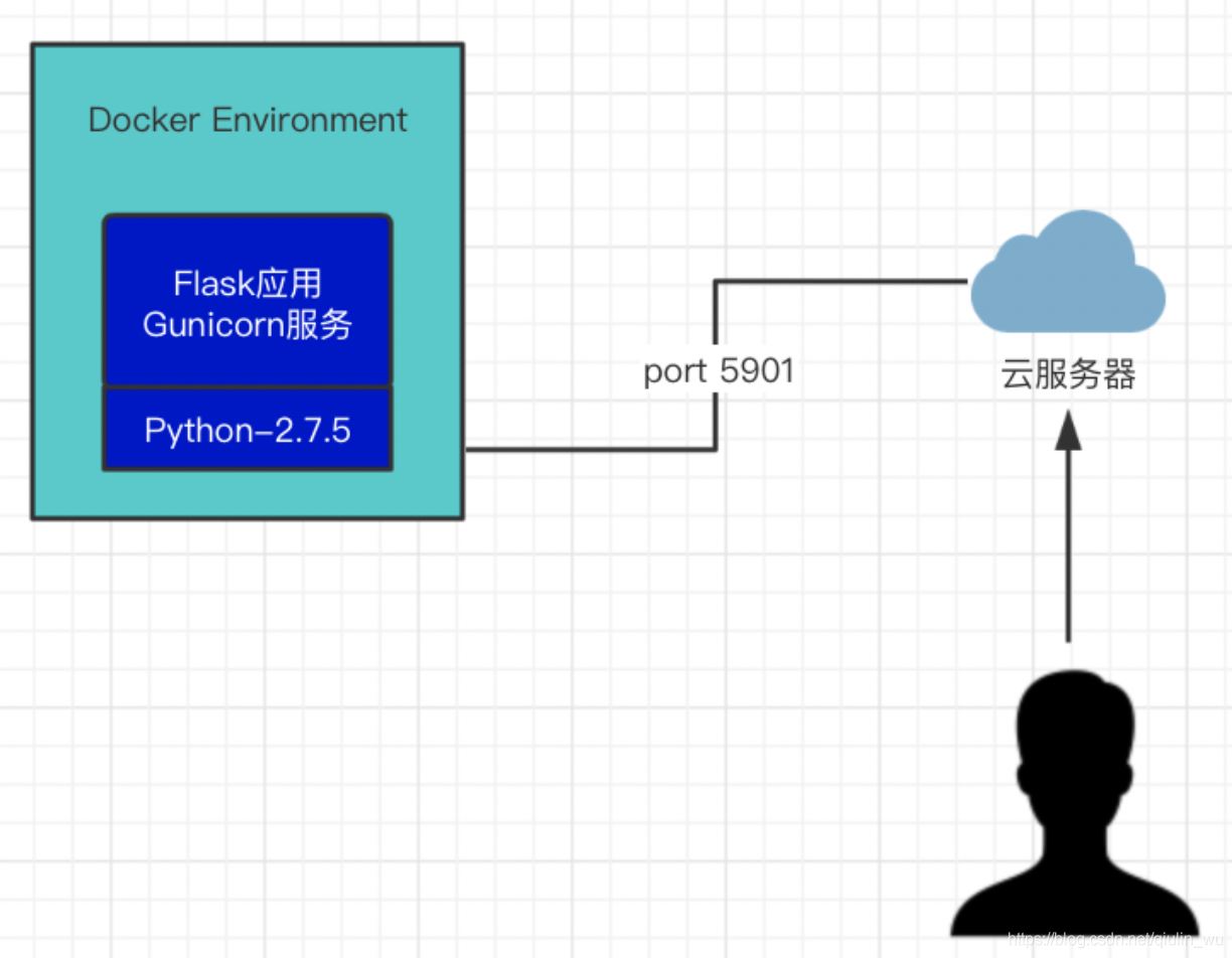 来!这里简单的画一个图来描述Flask应用被容器化服务的流程图
