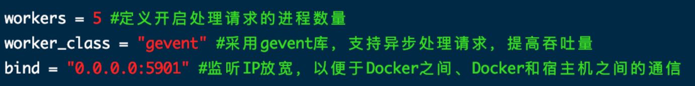 既然是真正的部署,你是否知道Flask应用它是一个符合WSGI规范的Python应用?它不能独立运行(类似run的方式只适合开发模式),需要依赖其他组件提供服务器功能。所以上面依赖包选择了Gunicorn+Gevent的超级组合,开始构建Gunicorn配置文件(下面workers的功能可以实际根据你的项目需求来定制化,我这边内部使用的话完全是够用的)