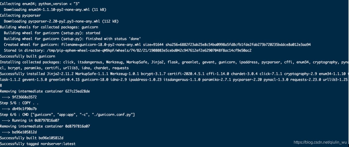 这个过程需要消耗一点时间,python:2的基础镜像它怎么说也有几百个M,请给予它应有的尊重。这个时候你可以为即将到来的胜利泡上一杯苦口的coffee庆祝这美好的时刻。OK!coffee下肚精神爽,下面看看理想状态下的效果它应该是以下这样的