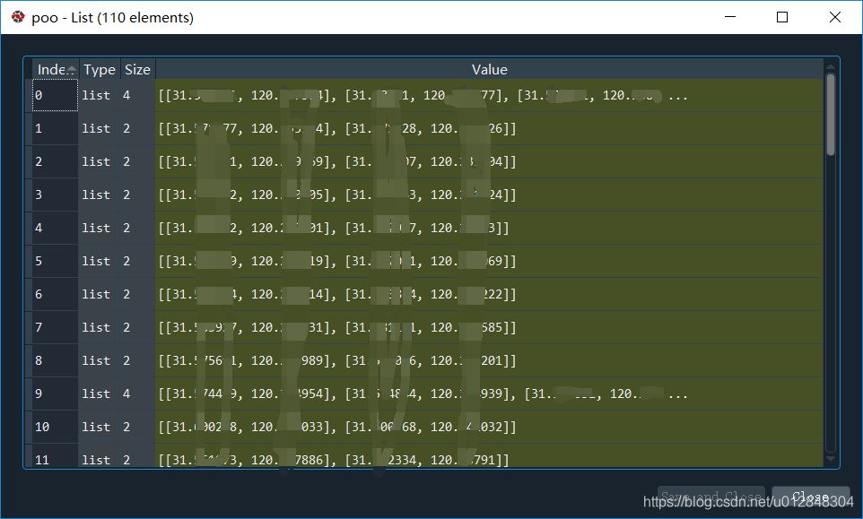 因涉及相关隐私,博主不具体介绍。总之,一番操作,获取到了百度地图坐标系下的道路经纬度数据,但前面说了,folium不支持百度地图,强行用百度地图坐标系下的经纬度坐标数据是会出乱子的,但这点小问题难不倒博主,高德地图API有坐标转换的接口呢。