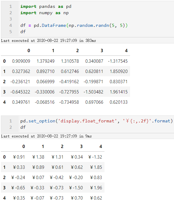 通过display.float_format参数我们可以设置浮点数的显示格式,譬如这里我们给浮点数加上¥前缀并设定保留两位小数: