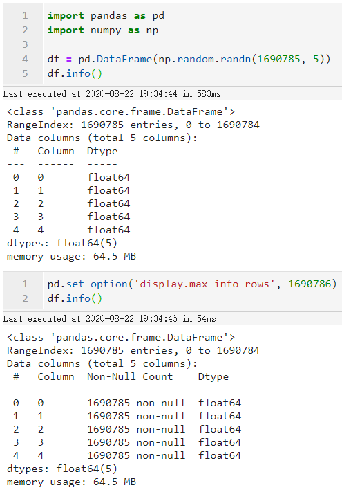这时我们可以通过设置display.max_info_rows参数来提高这个上限: