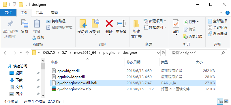 安装Qt后双击桌面的Designer没有反应,解决办法就是将安装路径里的qwebengineview.dll文件后缀名加个".bak"。