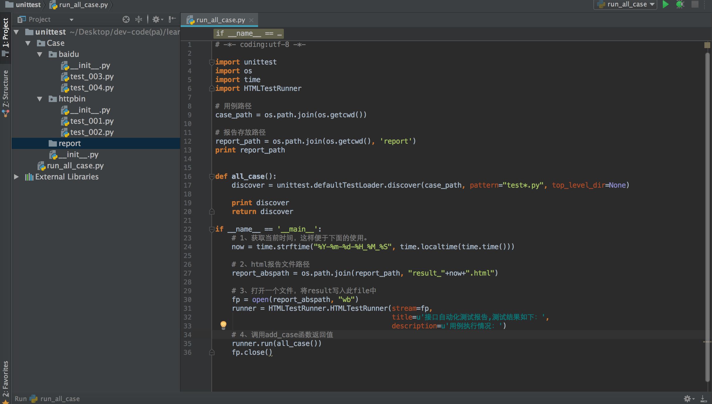 runner = HTMLTestRunner.HTMLTestRunner(stream=fp,
