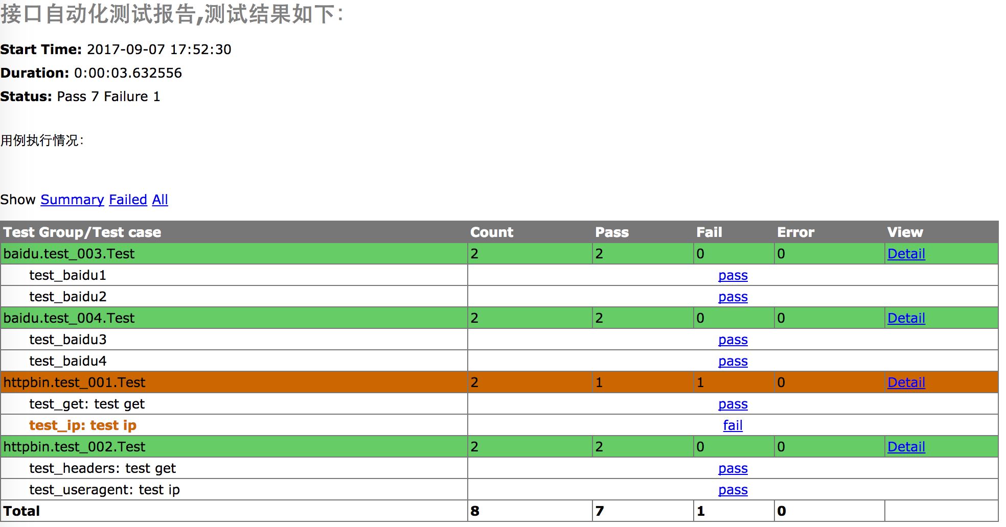 用例的管理问题解决了后,接下来要考虑的就是报告我问题了,这里生成测试报告主要用到HTMLTestRunner.py 这个模块,下面简单介绍一下如何使用: