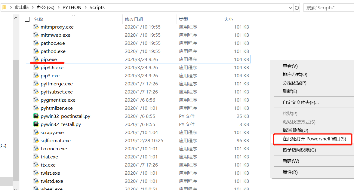 1.切换到pip的安装目录, 比如我安装的目录G:\PYTHON\Scripts