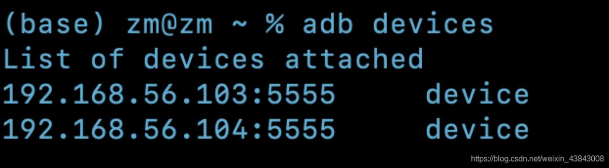 获取所有已连接设备的方法,执行"adb devices"后输出如下,通过对命令执行拿到的字符串切割获取所有设备号以列表方式存储