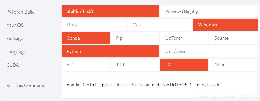 conda install pytorch torchvision cudatoolkit=10.2 -c pytorch