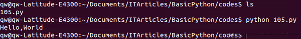 下面就关闭IDLE,打开shell(如果看官在使用苹果的ms xos操作系统或者某种linux发行版的操作系统,比如我使用的是ubuntu),或者打开cmd(windows操作系统的用户,特别提醒用windows的用户,使用windows不是你的错,错就错在你只会使用鼠标点来点去,而不想也不会使用命令,更不想也不会使用linux的命令,还梦想成为优秀程序员。),通过命令的方式,进入到你保存刚才的文件目录。