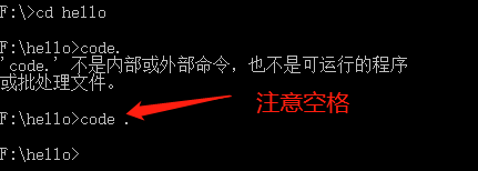 在命令提示符或终端上,创建一个名为“hello”的空文件夹,cd 到code该文件夹.,然后输入以下命令打开该文件夹()中的VS Code():