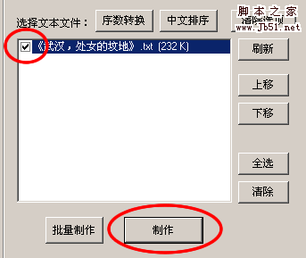 5、进行了以上设置后,在下面书籍列表框中勾选你所要转换的电子书,点击制作,稍等即可开始制作,我的计算机CPU1.7G内存512,制作时间是一秒,这个根据个人机器配置和书籍大小,速度一般都很快。如图: