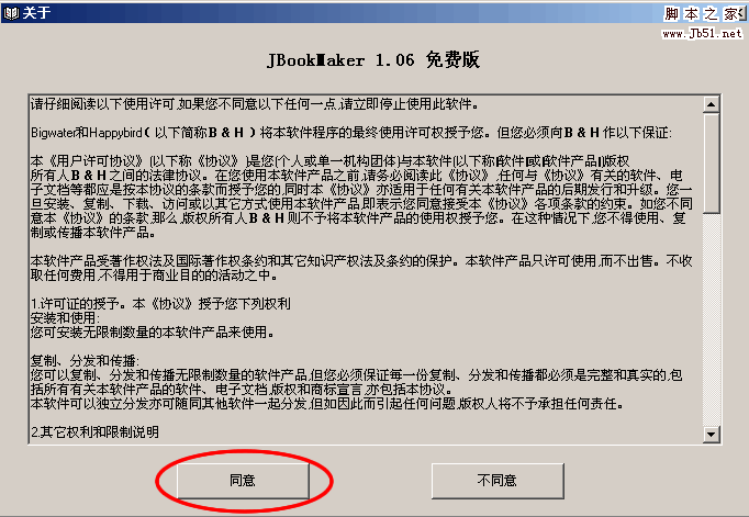 1、双击你刚才下载的JBookMaker.exe软件,得到一个免费使用的提示画面,同意即可,如果你想使用该软件更多