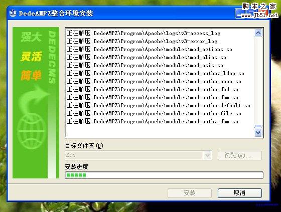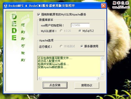 根据使用过本软件的用户反映的情况,有部份用户可能会遇到下面的问题: 1、在点击“点击安装”按钮在最后一步时可能会提示指定控件不存在的错误,那是因为有些盗版的操作系统禁用了一些组件,不过这不会影响软件的正常使用,仅是无法创建桌面图标而已,可以手工点击“DedeAMPZ.exe”运行客户端; 2、在安装DedeCms的时候,数据库名称随意填写,不过要选择“自动创建”的选项。