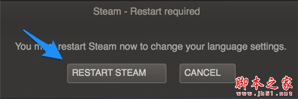 接着软件提示我们需要重新启动 Steam 才可以对设置的新语言第生效,点击 Restart Steam 按钮就可以了。