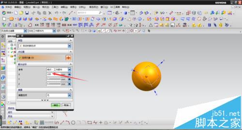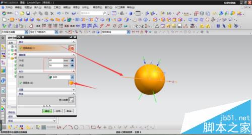 1、熟练的操作是在不断的练习中产生的,多数使用NX的人都有自己的模板。可以直接使用快捷键调用特征命令,或者选择插入/设计特征/球,指定球心位置和球体直径,创建一个球体。