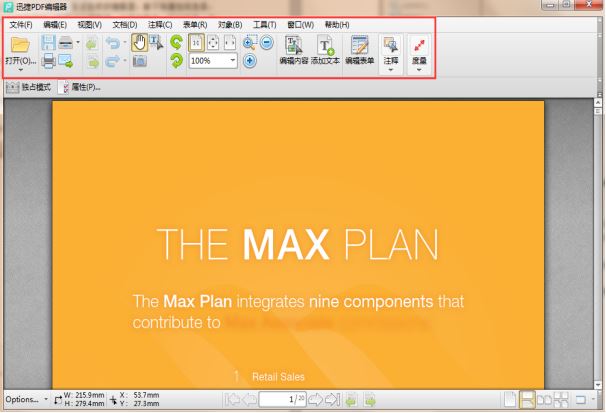 2、打开一个PDF的文档之后,我们可以看到迅捷PDF编辑器工具栏多了很好选项,只有打开了PDF文档进行编辑,这些选项才会显示出来。