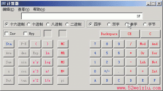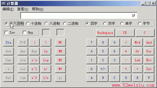 比如我们要将十六进制3F转换为十进制,就要先选中“十六进制”,然后输入3F