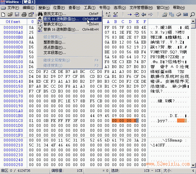 单击“搜索”——“查找十六进制数值……”,然后出来一个对话框