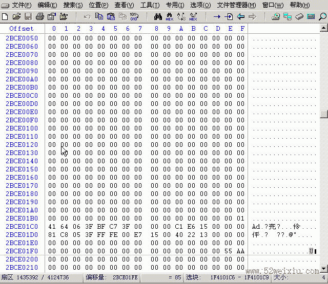 然后输入1435392,再点“确定”,就到了1435392扇区了(你可以使用它再转回到0扇区)