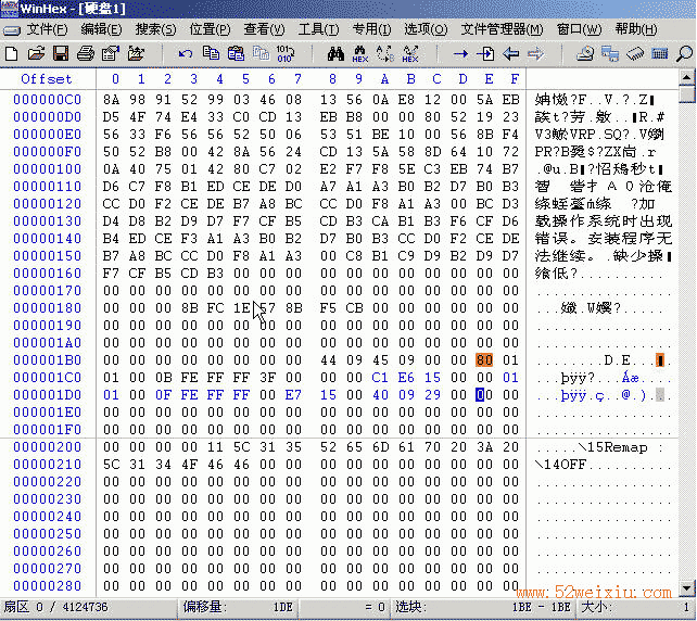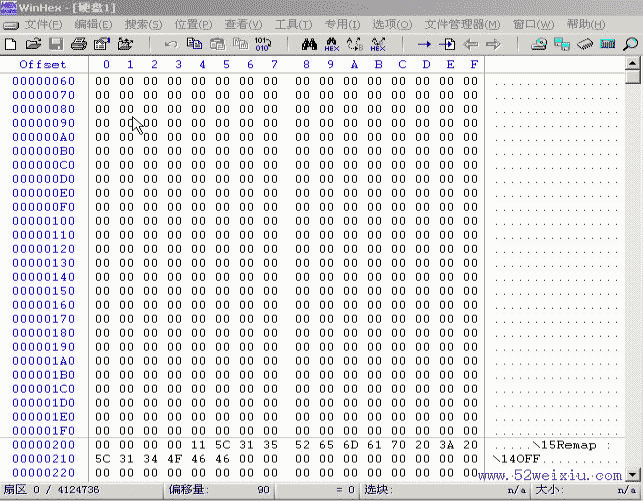 再打开Winhex发现MBR全部为零了,下面我们就着手开始手工恢复分区表