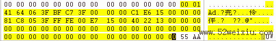 下面我们来分析一下MBR,因为前面我们说过,前446个字节为引导代码,对我们来说没有意义,这里我们只分析分区表中的64个字节。