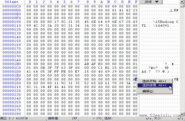 此例以Word 2000文档为例。通常情况下,word文档的大小不可能太大。在winhex的位置管理器当中,所有的位置是以地址来排序的。所以,看一下成对的头尾标志其偏移是否合逻辑。如不合,删了!