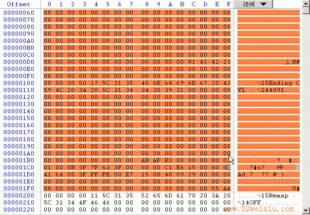 (这是在winhex中显示的情况,此部分内容是最后扇区的中间部分的内容#