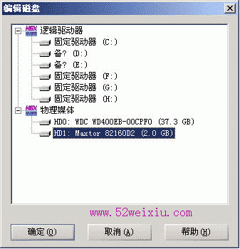 这里我们要对磁盘进行操作,就选择“打开磁盘”,出现“编辑磁盘”对话框: