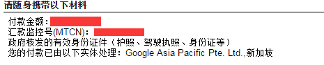 您的付款已由以下实体处理:Google Asia Pacific Pte. Ltd.,新加坡