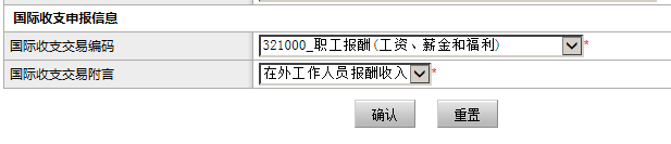 进入查询结果页面,页面下方回显汇款信息,输入收汇人信息及国际收支申报信息后,点击确认按钮;