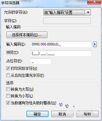 测试:显示在“输入掩码”字段中指定的数据模板示例;还允许您输入数据来测试数据模板是否按期望工作。