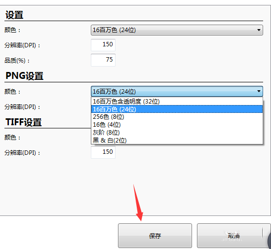 3、点击PNG设置下的颜色下拉框,可以选择用户需要的颜色,下方的分辨率也可以自定义的去选择。(其他一些需要设置的参数之类的可以点击对应的按钮进行设置,)。