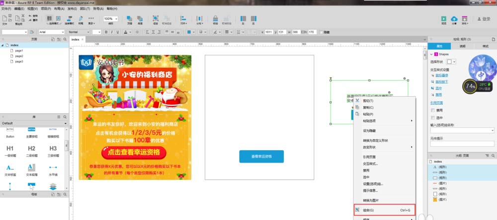 1、打开Axure,小编就以某读书软件的一个活动为例,教教大家如何实现弹窗。