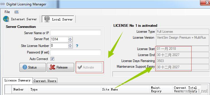 3、选择本地服务器,点击activate,即可看到右边生成注册信息,可使用到2027年,即破解成功